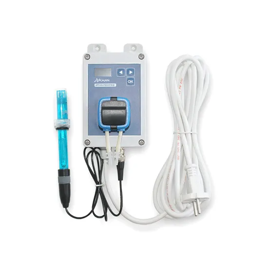 Регулятор pH в автоматическом режиме поддерживает уровень pH раствора или воды одним из реагентов (кислотой или щёлочью). Перистальтический насос с большой точностью добавляет нужный реагент, пока pH не придет в норму.