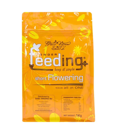 Удобрение Green House Powder Feeding Short Flowering специально разработан для роста и цветения всех раннецветущих сортов растений. Идеально подходит для растений с коротким периодом цветения, не превышающим 8 недель.