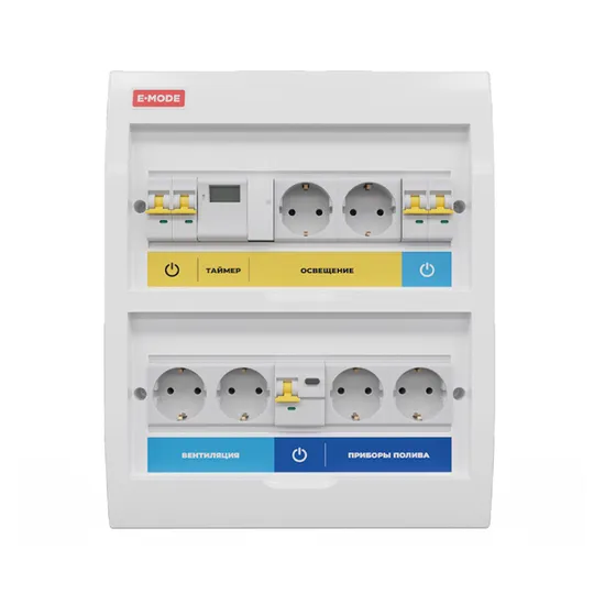 Щит электрический E-MODE РУ-ЩЭ предназначен для установки в жилые, не жилые и коммерческие помещения, в которых есть электричество, а также для подключения приборов автоматизации, вентиляции и освещения, для выращивания растений в закрытых боксах, теплицах, либо в отдельных помещениях.