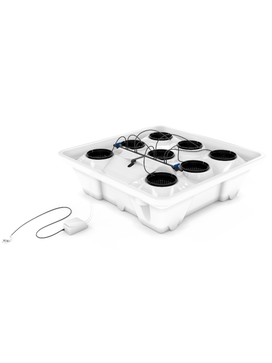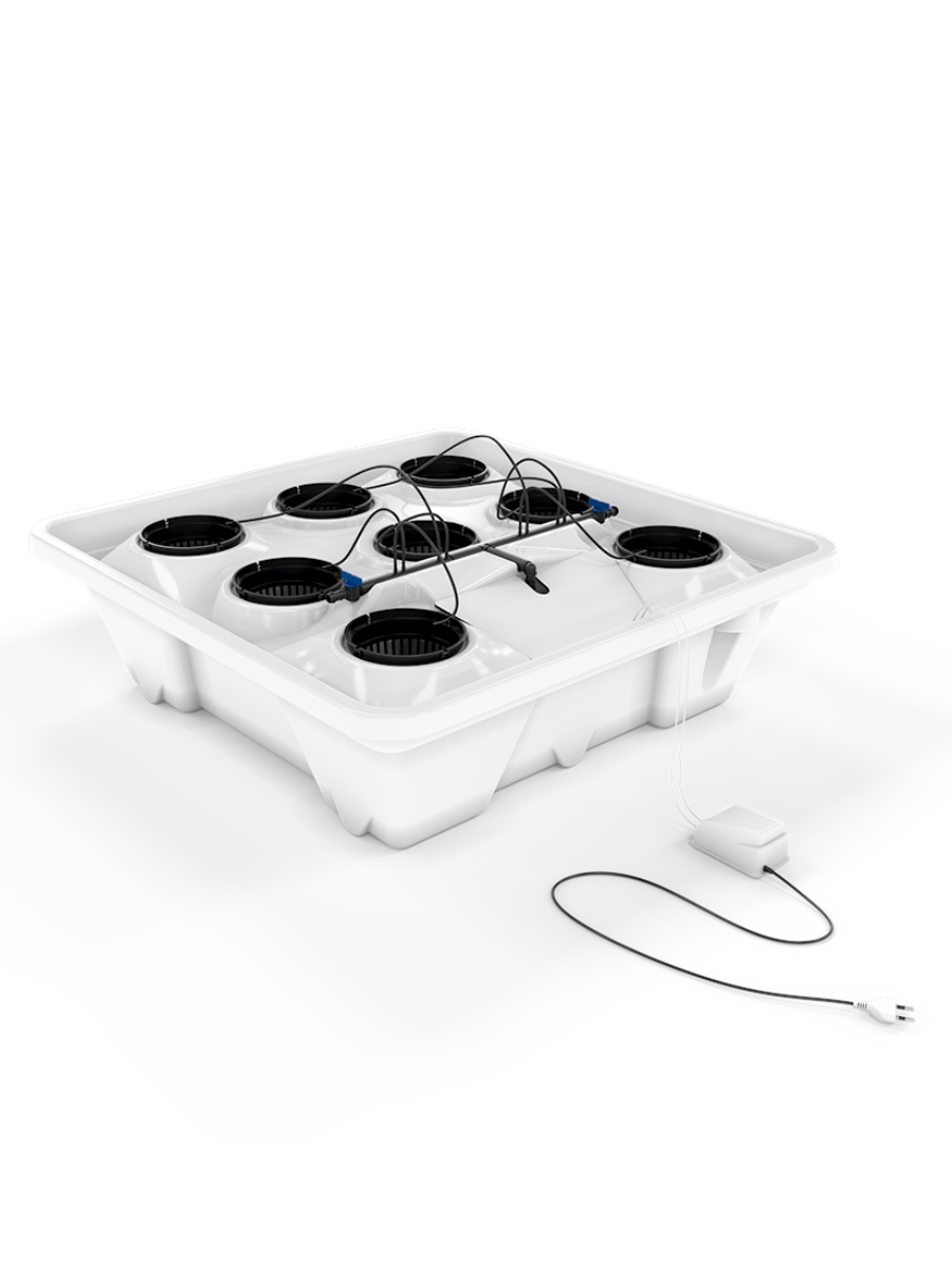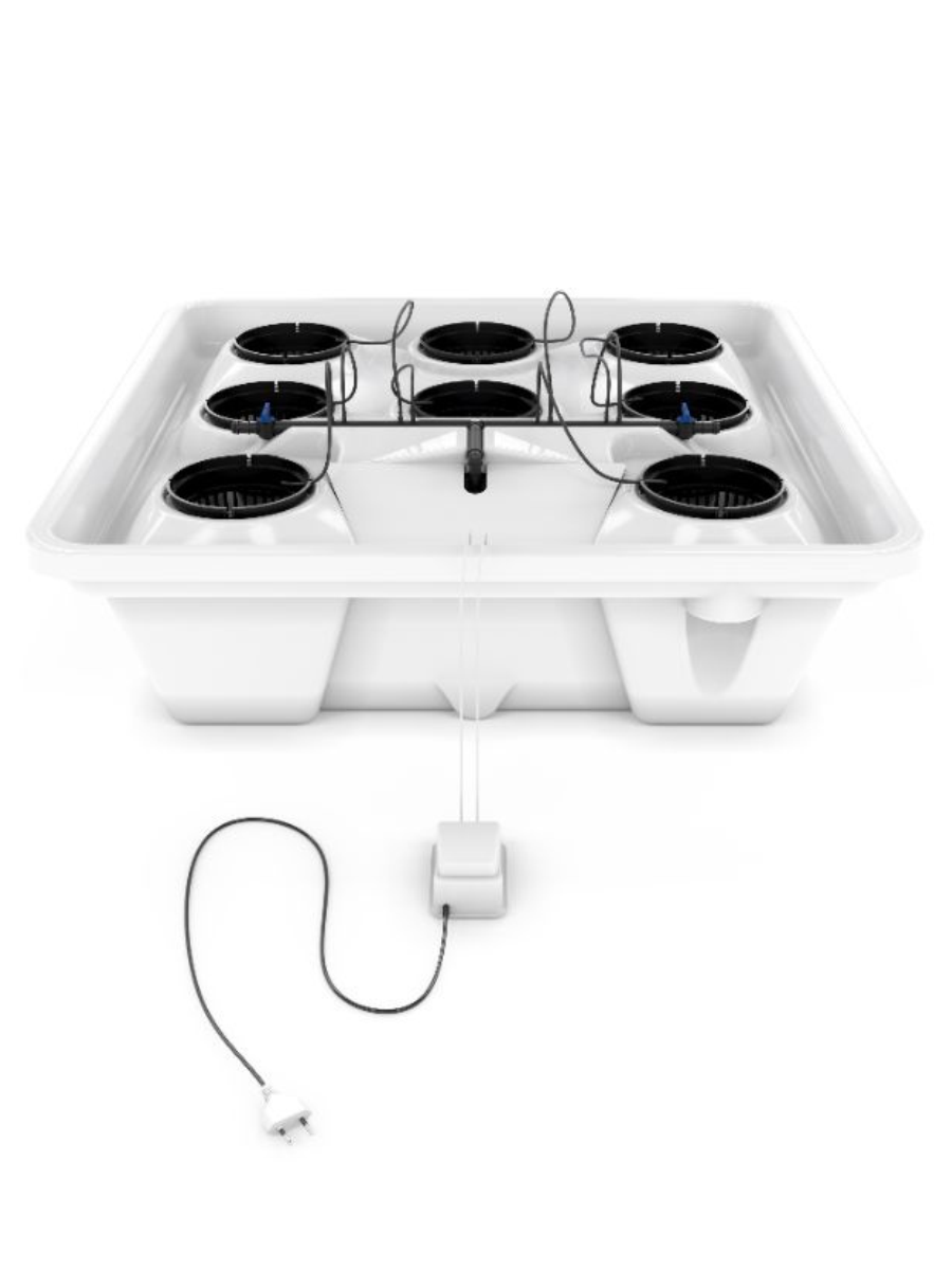 Практика Окси 8 – система выращивания, предназначенная для культивирования растений без использования земли/почвы. В основе работы установки лежат два принципа: техника реверсивного орошения RWT (Reversible Watering Technique) – капельный полив, и принцип глубоководной культуры DWC (Deep Water Culture) – корни растений погружены в питательный раствор, аэрируемый компрессором. Система рассчитана на восемь растений.