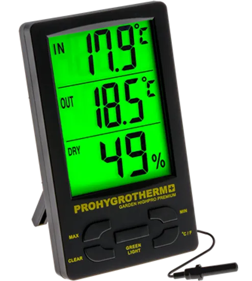 Термометр с гигрометром Garden Highpro HygroThermo PRO - это метеостанция, которая предназначена для отслеживания температуры и относительной влажности в помещении. Благодаря этому устройству вы сможете контролировать климат в вашем помещении для выращивания.