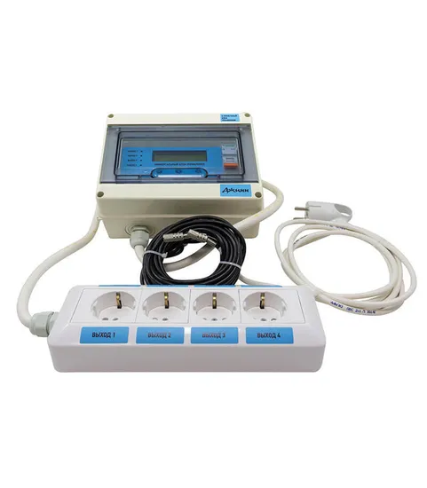 Прибор имеет дисплей, на котором отображаются следующие значения: текущая дата и время, диапазон поддерживаемой температуры. Панель управления для просмотра и настройки необходимых параметров. Четыре индикатора, на лицевой части контроллера, показывают какое устройство включено в текущий момент. К прибору можно подключить до четырех устройств одновременно. В случае перебоев с электроэнергией, часы и настройки прибора не сбрасываются, фиксируется параметры силовых выходов прибора на момент сбоя.
